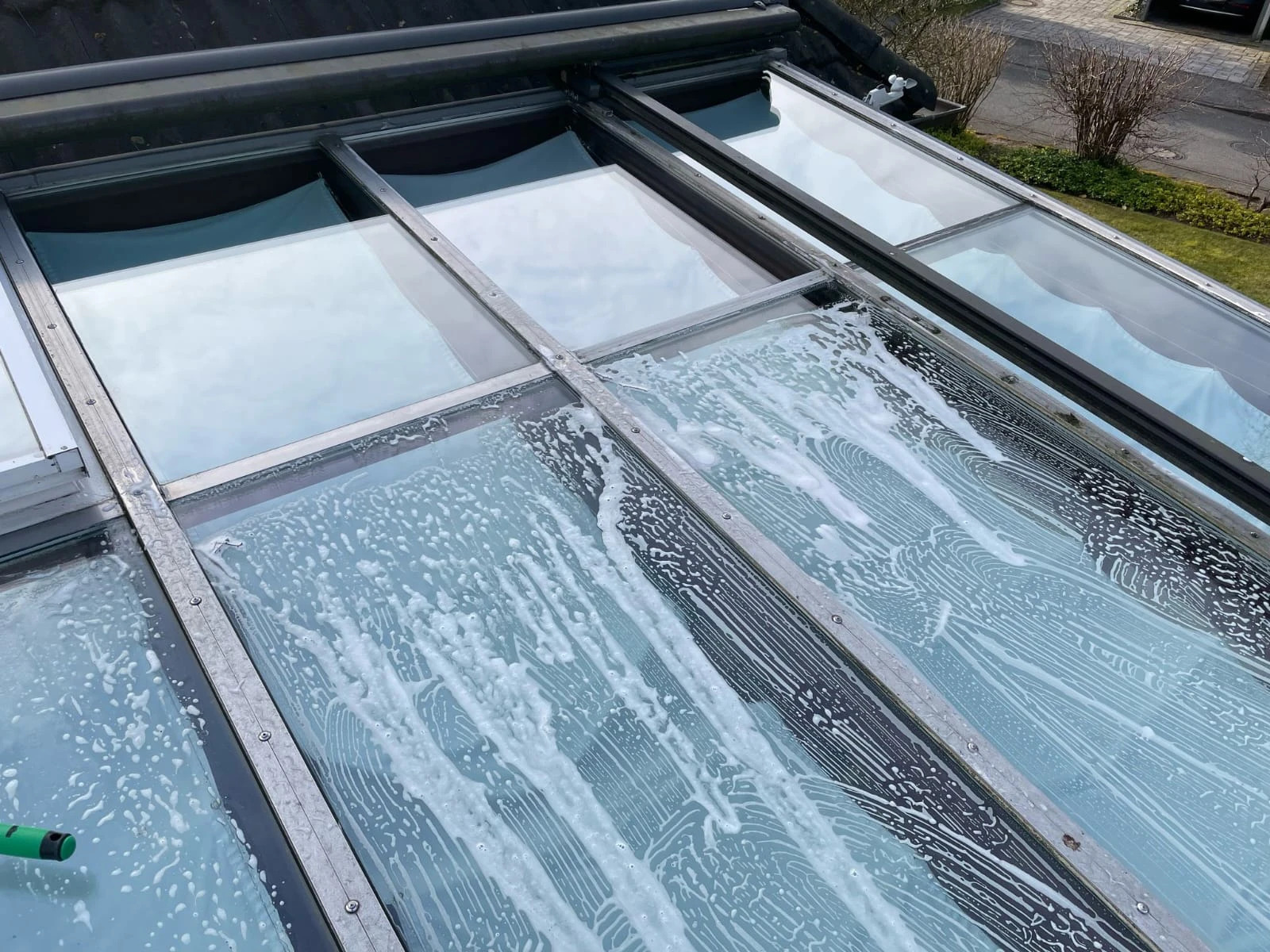 Unsere professionelle Wintergartenreinigung umfasst die gründliche Reinigung aller Oberflächen, einschließlich der Fenster, Rahmen und Dachkonstruktion. Wir entfernen sicher und effektiv Schmutz, Staub und Ablagerungen, um Ihren Wintergarten wieder in einen strahlenden Zustand zu versetzen. Unser erfahrenes Team arbeitet sorgfältig und mit Rücksicht auf Ihre Einrichtung, um ein optimales Ergebnis zu erzielen. Genießen Sie die Klarheit und Frische Ihres Wintergartens nach unserer Dienstleistung.